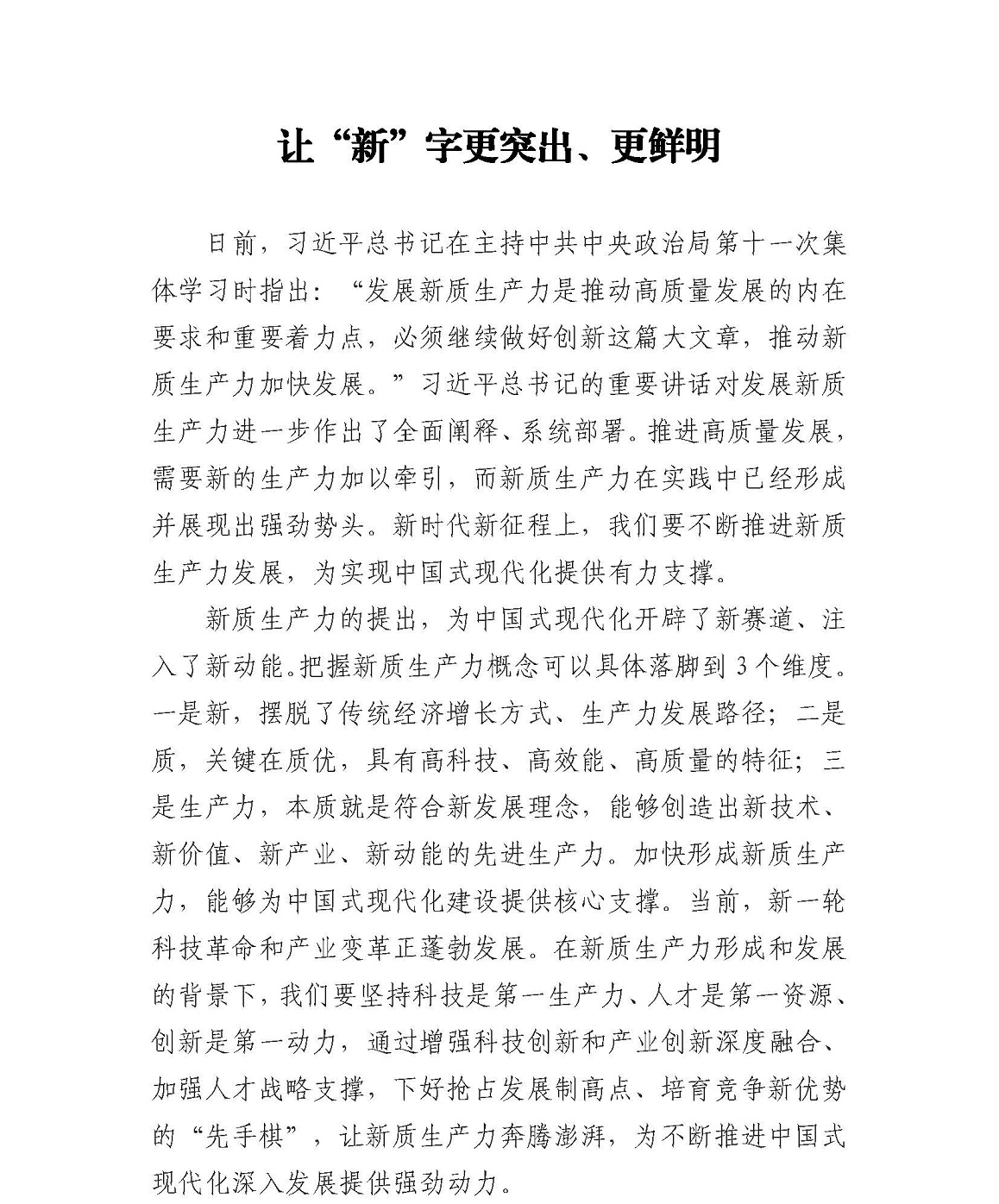 2024-02-23 來源:轉載《光明日報》2024年02月23日文章《讓“新”字更突出、更鮮明》 閱讀: [ 返回列表 ]