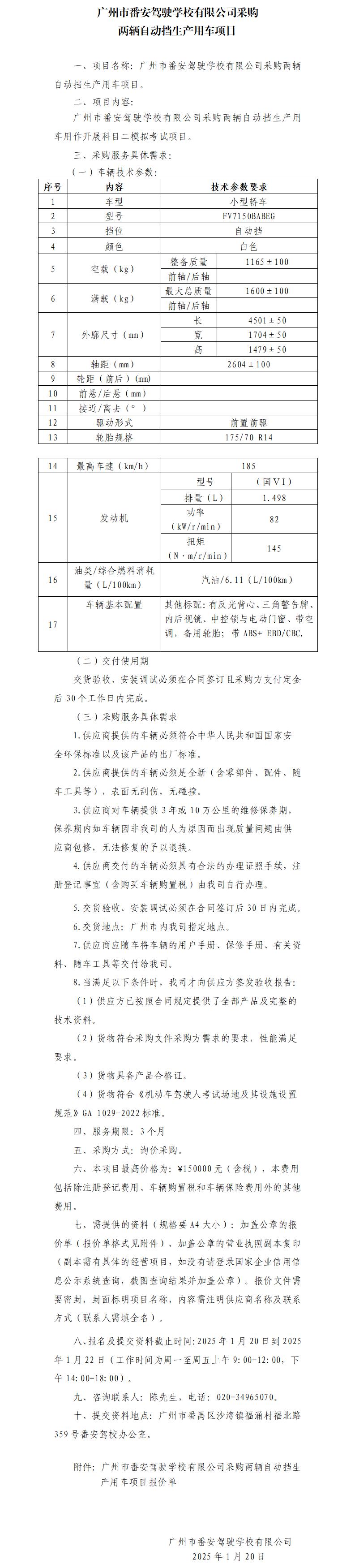 附件:廣州市番安駕駛學(xué)校有限公司采購兩輛自動(dòng)擋生產(chǎn)用車項(xiàng)目報(bào)價(jià)單.xls