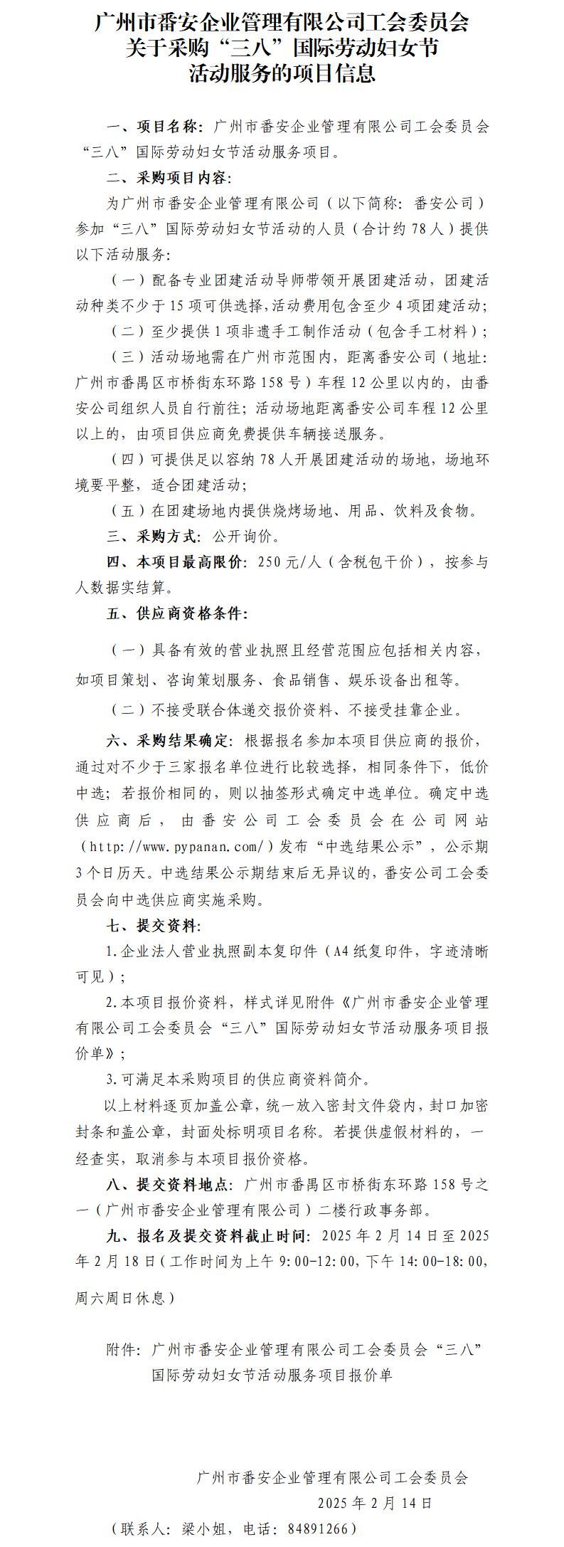 附件:廣州市番安企業管理有限公司工會委員會“三八”國際勞動婦女節活動服務項目報價單.xls