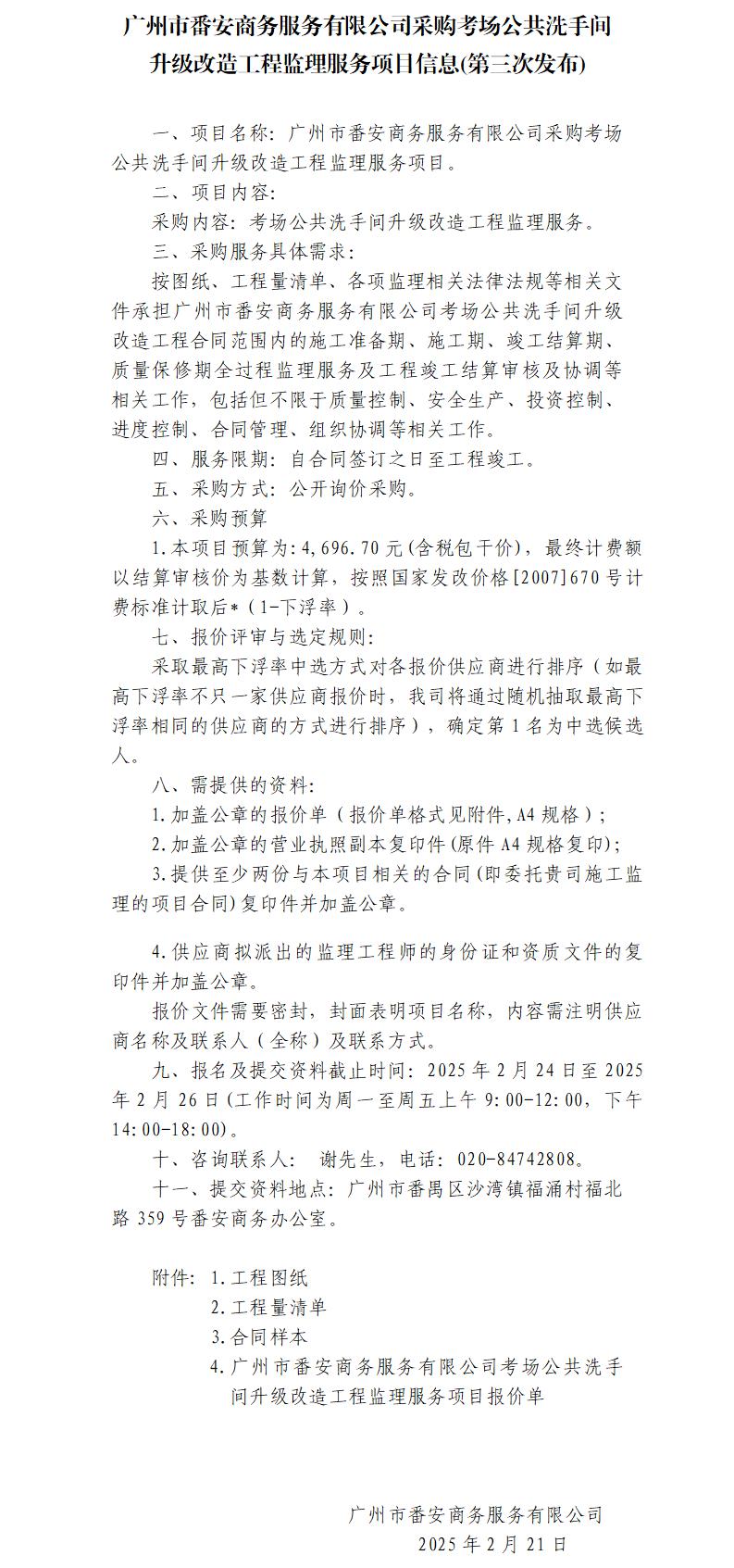 4.廣州市番安商務服務有限公司考場公共洗手間升級改造工程監(jiān)理服務項目報價單.xls