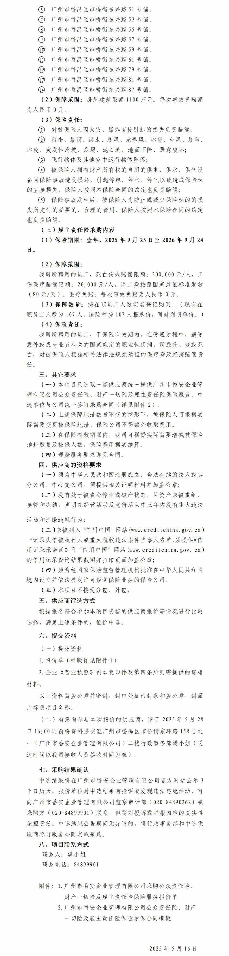附件1廣州市番安企業管理有限公司采購公眾責任險、財產一切險及雇主責任險保險服務報價單.doc